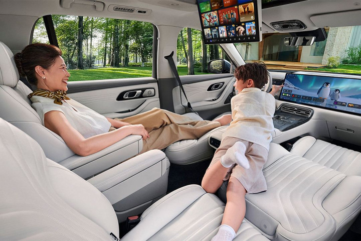 前排绝对算得上是银河M9能够在同级竞品中脱颖而出的一个重要的点。它采用了30英寸贯穿多媒体触控屏,屏幕分辨率达到6k水平,登陆视频会员可直接享受4K观影效果!