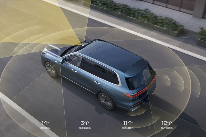 智能驾驶辅助系统方面,吉利银河M9也标配了千里浩瀚H5方案,实现了端到端辅助驾驶。这套系统重点在于配备了1颗激光雷达,可以实现无图NOA,同时泊车层面也有突出表现。